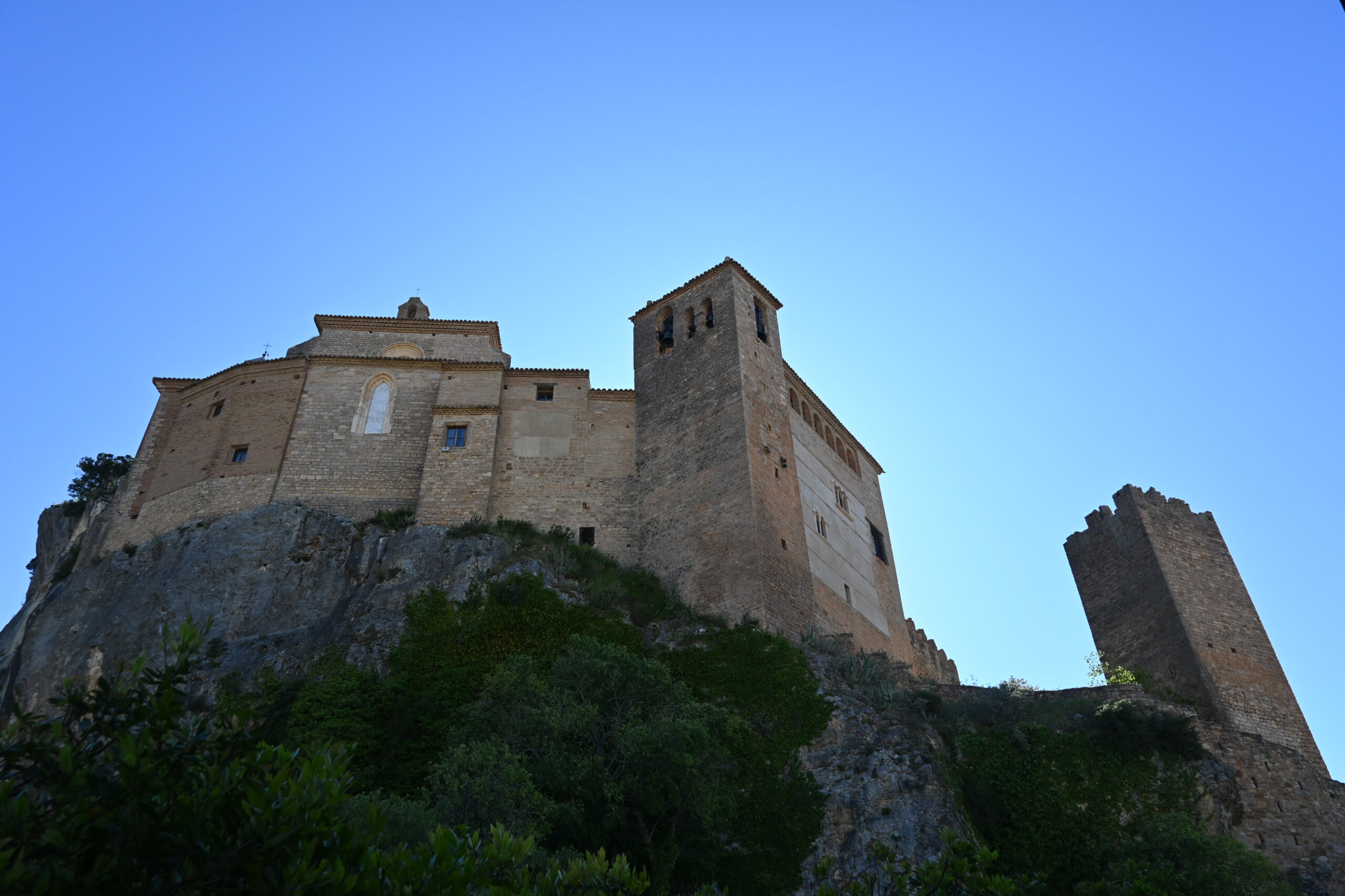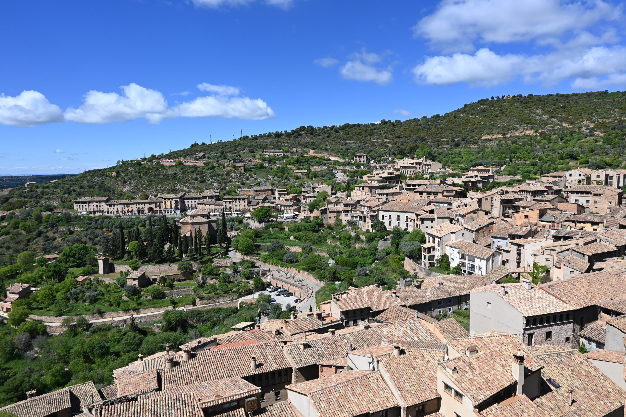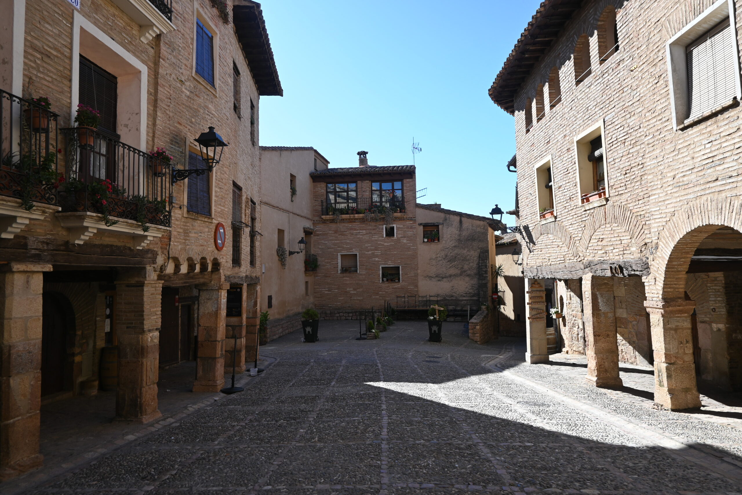 Après une nuit paisible sur notre spot, nous reprenons la route de bon matin, direction le prochain arrêt de ce trip : Alquézar. Ce petit village médiéval, niché au pied de la Sierra de Guara, domine les gorges de la rivière Véro. Arrivés tôt, nous avons eu la chance de flâner dans ses ruelles historiques, admirant les vieilles bâtisses. Nous passons devant le château, modeste mais impressionnant, et nous nous dirigeons vers la collégiale Sainte-Marie-la-Majeure, le monument phare de la région.
