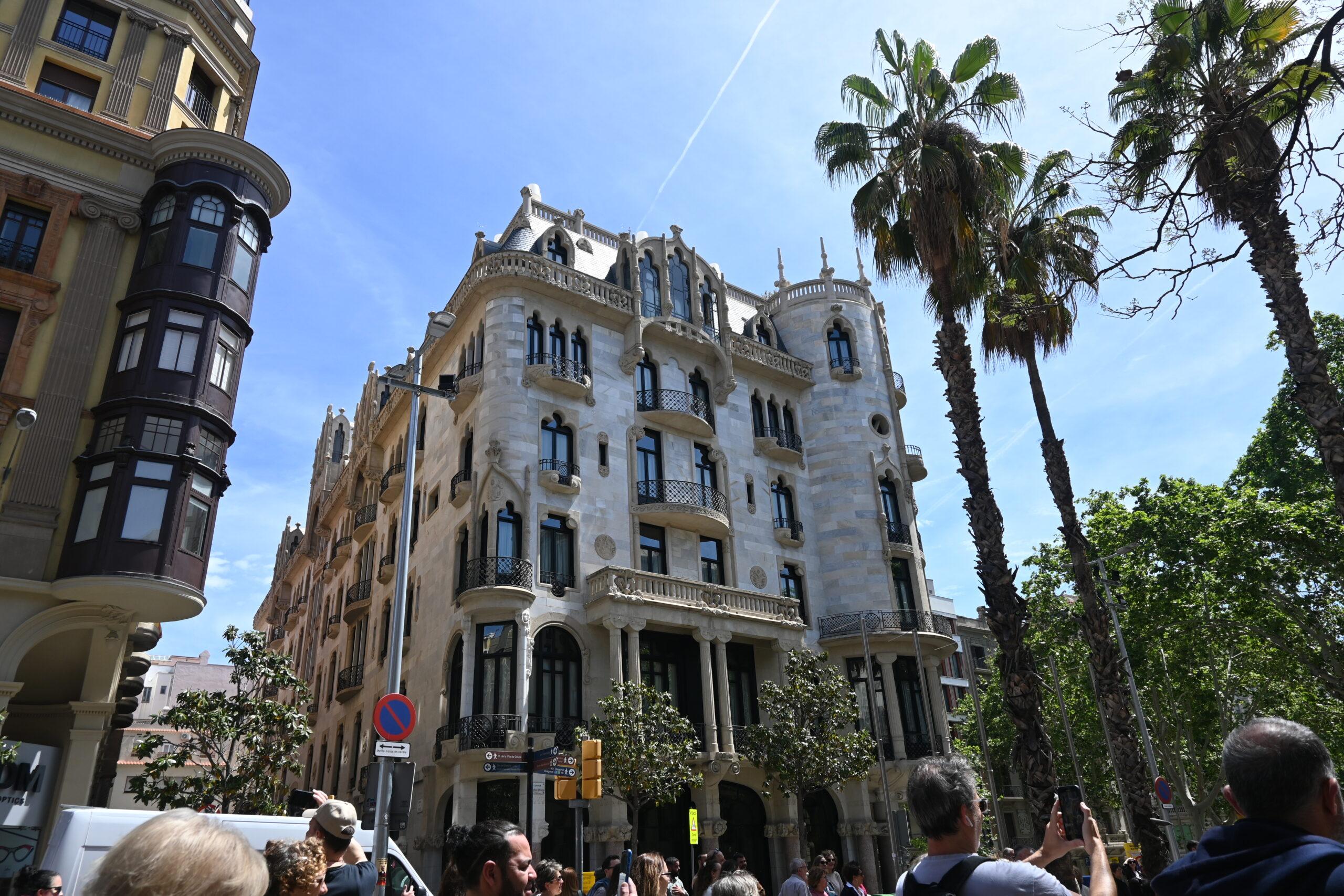 Après cette visite on retourne dans les rues Barcelonaise à la recherche des autres bâtiments de Gaudi. On remonte le long d’une magnifique avenue large et boisée on découvre 3 autres de ses créations. A chaque fois signées de son style si particulier. C’est une particularité de Barcelone, tous les styles architecturaux se mêlent entre eux, et le rendu fonctionne bien !