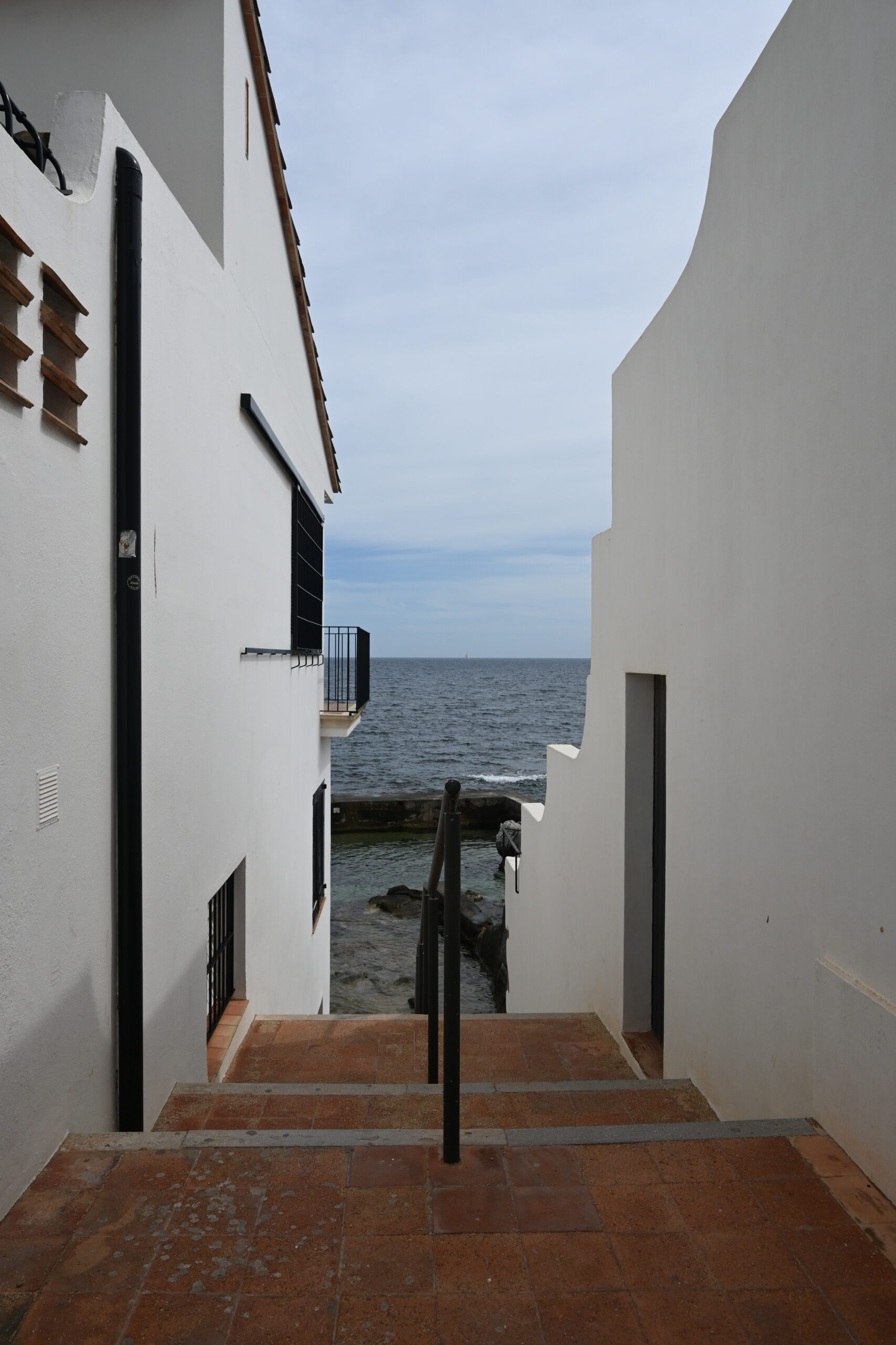 Le temps de la digestion on fait la route qui nous sépare de Cadaques. On se gare a 1km du village dans un petit hameau nommé Portlligat, car les parkings de Cadaques sont tous plein à cette heure de la journée (et ils sont plutôt petit), mais au moins on commence tout de suite par l’attraction de ce petit hameau : la maison de résidence de Salvador Dali, elle peut se visiter moyennant finance mais nous n’étions pas plus intéressés que ça. C’est par contre intéressant de voir le cadre de vie donc disposait l’artiste pour réfléchir à ses créations, et on comprend vite pourquoi il s’est installé ici. La petite baie de Portlligat est ravissante et d’un calme très apaisant, surement inspirant pour l’artiste. On remonte ensuite la colline pour basculer de l’autre côté de la baie dans le village de Cadaques. C’est un village de pêcheur traditionnel réputé pour avoir gardé son âme d’antan. Effectivement nous avons tous les deux été enchanté de cette visite, les bâtiments et leur enduit blanc donnent presque un air Grec a ce village, les rues pavées et pentues donnent envie de s’y perdre car à chaque coin de rue quelque chose est là pour attirer votre regard : une maison, un arbre fleuri, un balcon décoré….On se balade un long moment dans les rues pour profiter des lieux puis on retourne tranquillement au van.